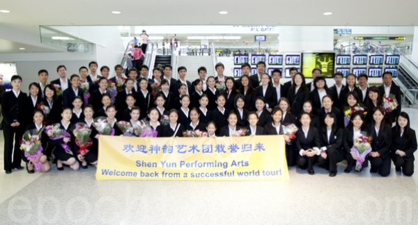 美國神韻紐約藝術團已經飛抵美國新澤西州的紐瓦克國際機場,神韻紐約藝術團成員包括著名男高音歌唱家洪鳴、女高音歌唱家黃碧如以及著名中國舞舞蹈家 任鳳舞和陳永佳等藝術家們。他們在機場受到等候的大紐約地區神韻粉絲們的熱烈歡迎。